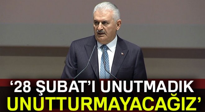 “28 Şubat’ı unutmadık, unutturmayacağız" diyen Başbakan Binali Yıldırım, "28 Şubat sürecinin Türkiye’ye maliyeti 390 milyar dolar. Çıkan ağır faturalar da millete ödettirildi. Başarılı veya başarısız her türlü darbe girişimi bu ülkeye ihanettir” ifadelerini kullandı.