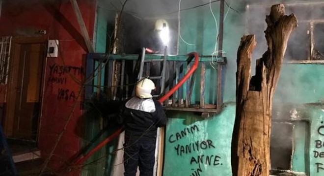 Afgan uyruklu 8 kişinin yaşadığı 2 katlı gecekondunun üst katında mutfak tüpü patladı. Çıkan yangında gecekondu kullanılamaz hale geldi. Gecekondu duvarındaki “Canım yanıyor anne” yazısı dikkati çekti.