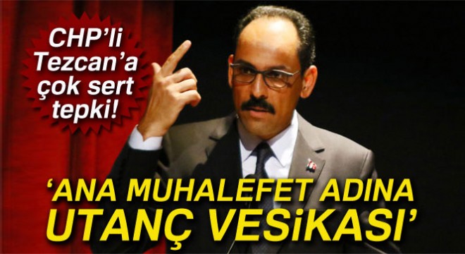 Cumhurbaşkanlığı Külliyesinde düzenlediği basın toplantısında konuşan İbrahim Kalın, Cumhurbaşkanı Erdoğan’a yönelik sözleri ile tepkileri üzerine çeken CHP Sözcüsü Bülent Tezcan ile ilgili hukuki yolları harekete geçirdiklerini belirterek, "Bu tür ifadeler Türkiye’de ana muhalefet adına utanç vesikasıdır. Diktatör söyleminin ne amaçla tedavüle sokulduğunu ne amaçla kullanıldığını biz çok iyi biliyoruz. Türkiye’de başka karışıklıkları ortaya çıkartmak, harici ya da dahili girişimlerin zeminini hazırlamaya dönük adımlar olduğunu biz gayet iyi biliyoruz" dedi.